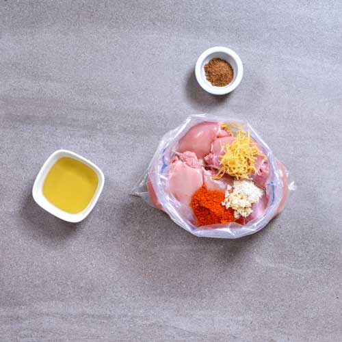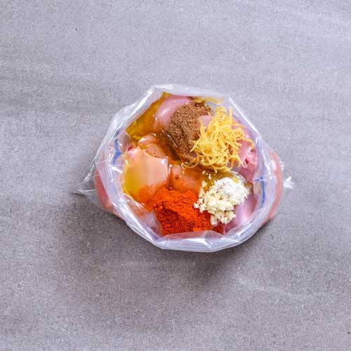 Tüm malzemeyi bir karıştırma kabında karıştırın. Marinasyon için kilitli torbaya koyarak buzdolabında 3-4 saat bekletin.