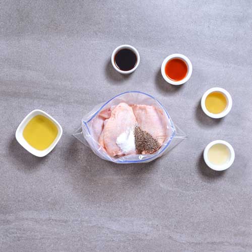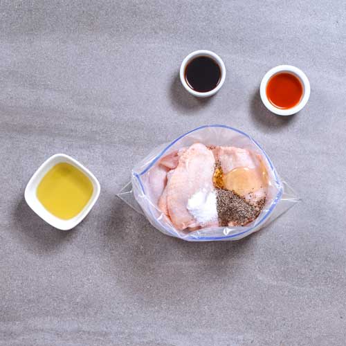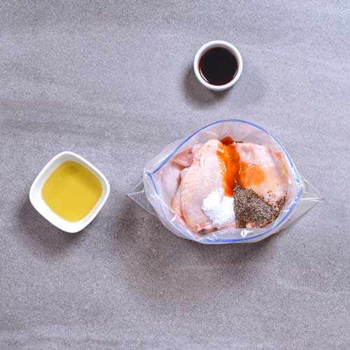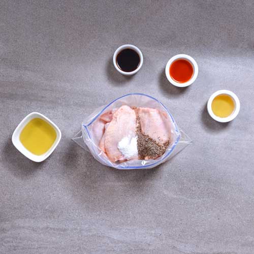 Tüm malzemeyi bir karıştırma kabında karıştırın. Marinasyon için kilitli torbaya koyarak buzdolabında 3-4 saat bekletin.